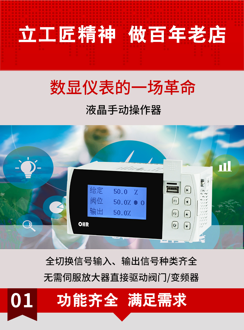 OHR-G500/G500R系列液晶手動操作器/記錄儀適合作為DCS系統回路調節控制輸出和智能調節器控制輸出的備用操作器使用,能接受與系統同步的給定信號和反饋信號,根據給定信號輸出相應的控制量.